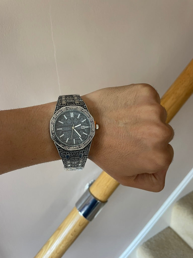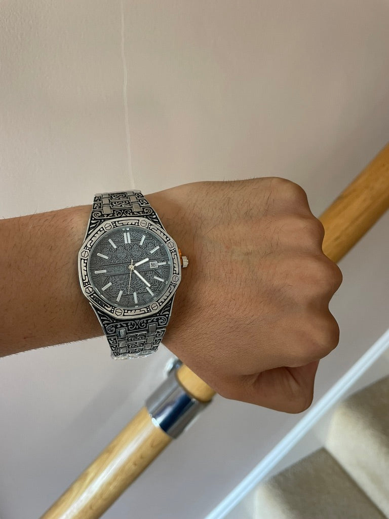 Men watch in silver with silver dial Arabic quartz watch – waterproof stainless steel