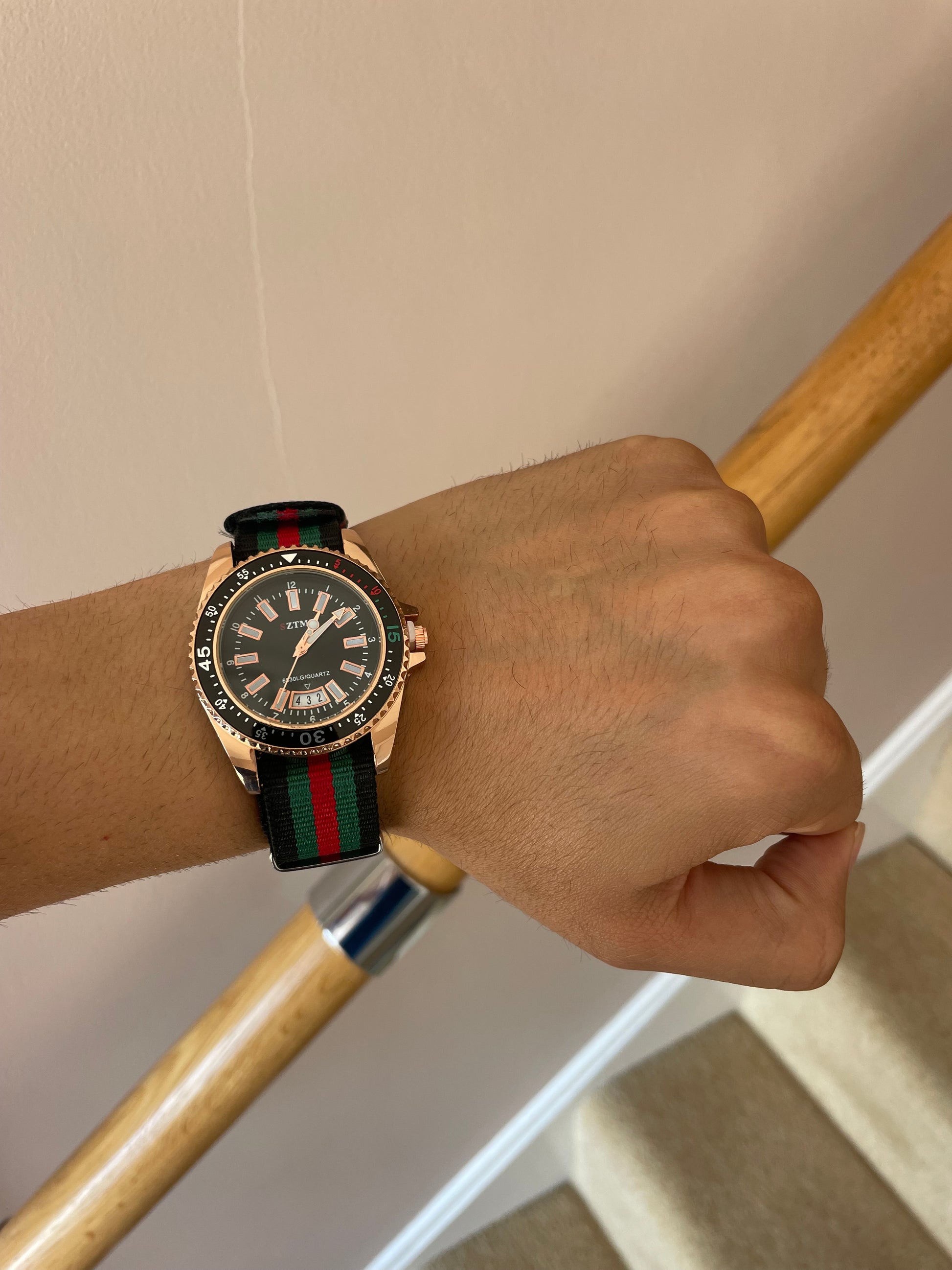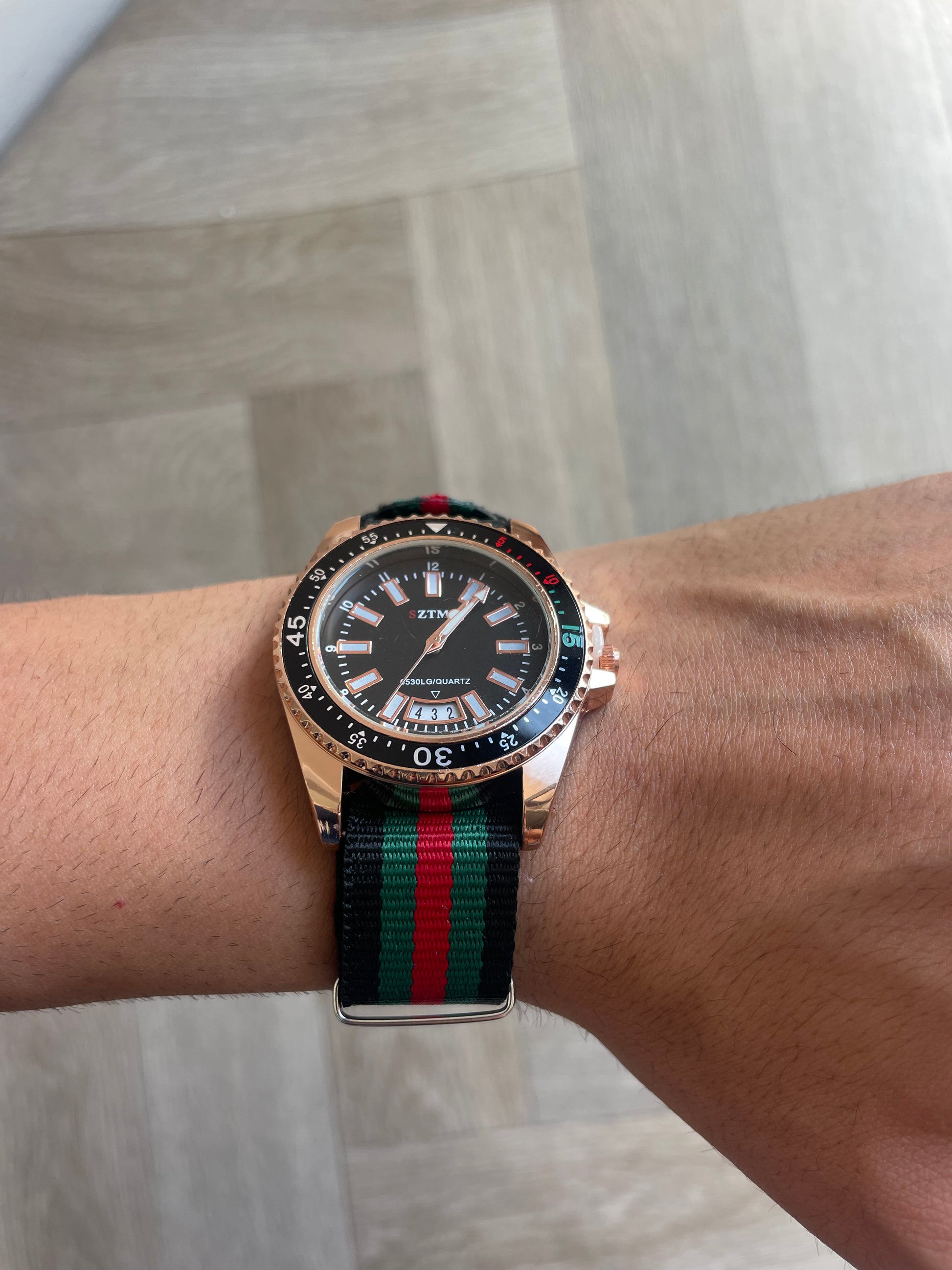Men's Watch Classic Rose Gold & Black – Luxury Quartz, Stainless Steel, nylon strap
