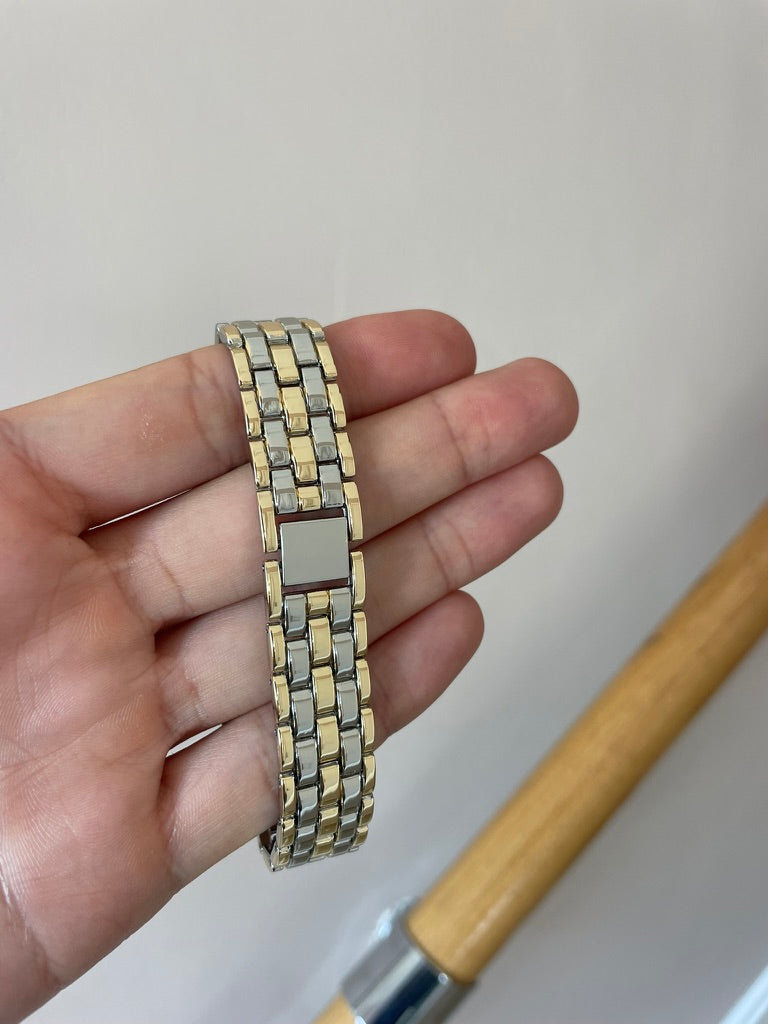 Shop this stunning green dial women's watch with a dual-tone gold and silver bracelet. Features crystal hour markers, quartz movement, and a luxury-inspired design – perfect for elegant everyday wear or special occasions.